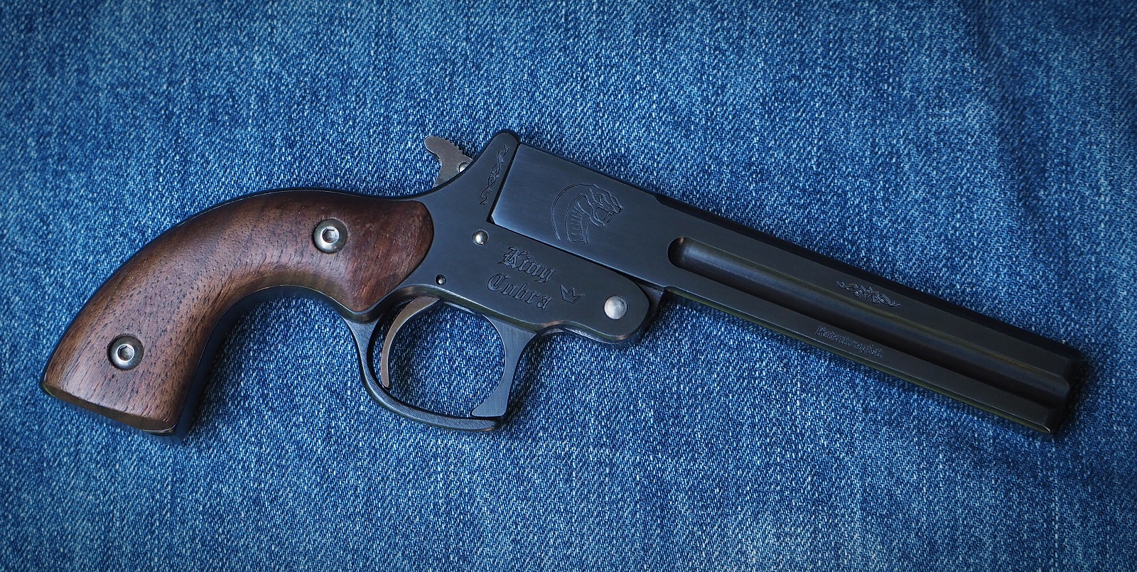 Pistole King Cobra LR černěná, 127 mm hlaveň, ořechová střenka ............................................. 22 900 Kč